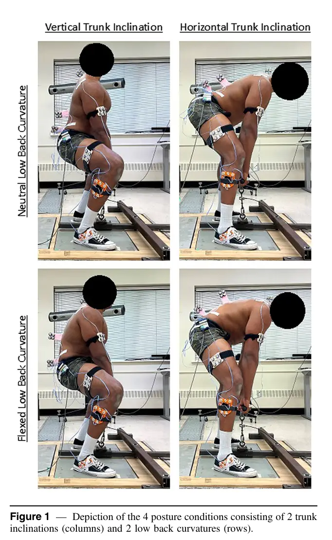 Pinto BL, Beach TAC, Callaghan JP. Modifying Trunk Inclination and Low Back Curvature Inconsistently Affects Isometric Multijoint Lifting Strength Across Individuals. J Appl Biomech. 2025 Aug 11;41(5):442-450. doi: 10.1123/jab.2024-0334. PMID: 40789574.